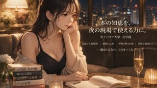 キャバクラ大学・文学部のまとめ記事です。会話、人間関係、心理、習慣、品格など、有名書籍の知恵をキャバ嬢・夜職女性向けに翻訳し、夜の現場で使える形でわかりやすく整理しています。