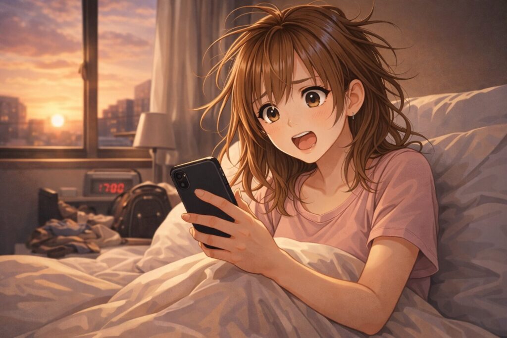 起きた瞬間、スマホが光ってた。