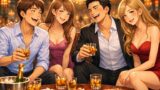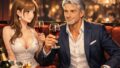 3人でシャンパンを飲みながら談笑。